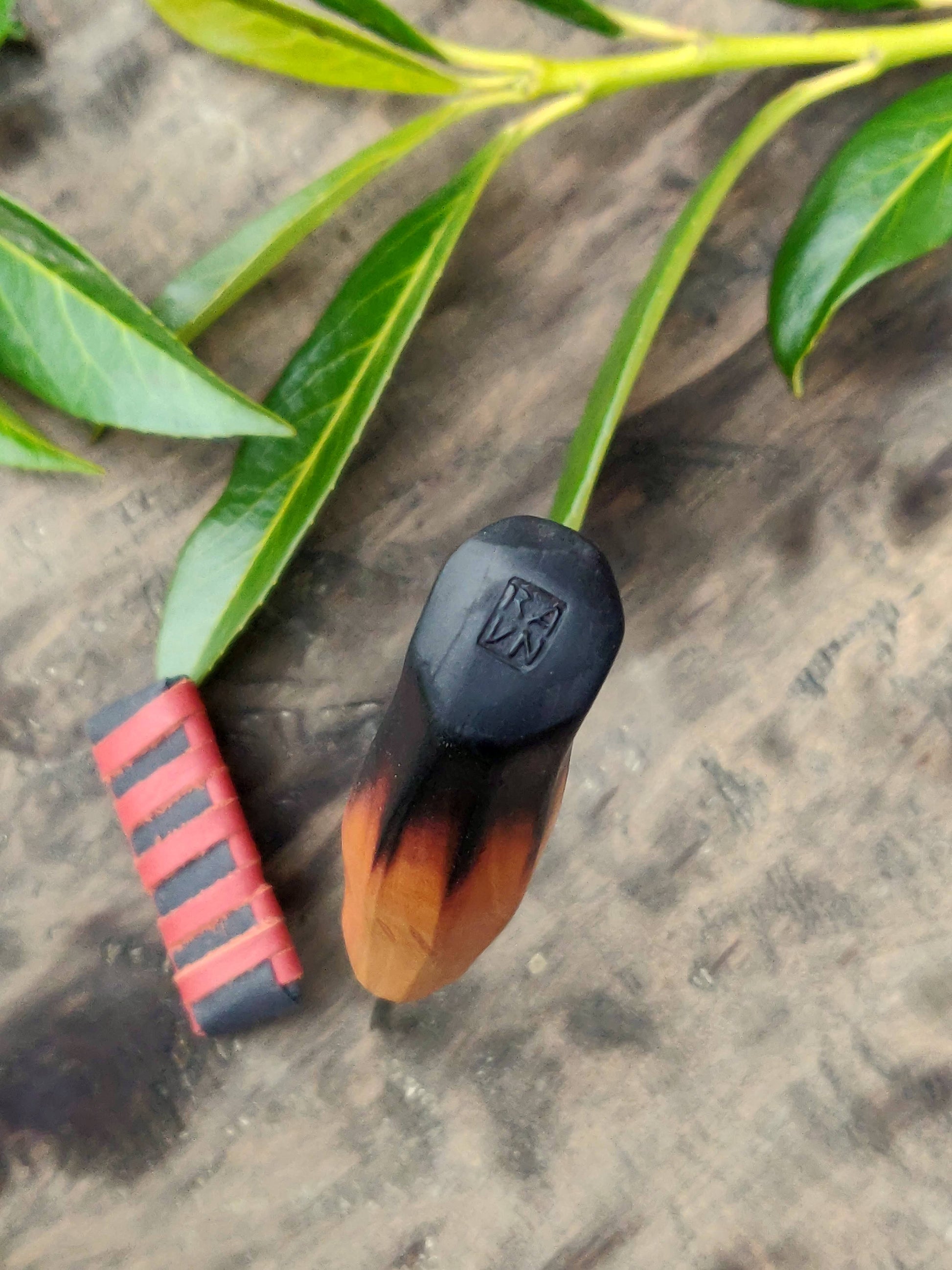 Carving knife made from hand-forged high carbon steel blade and roasted apple wood handle.
