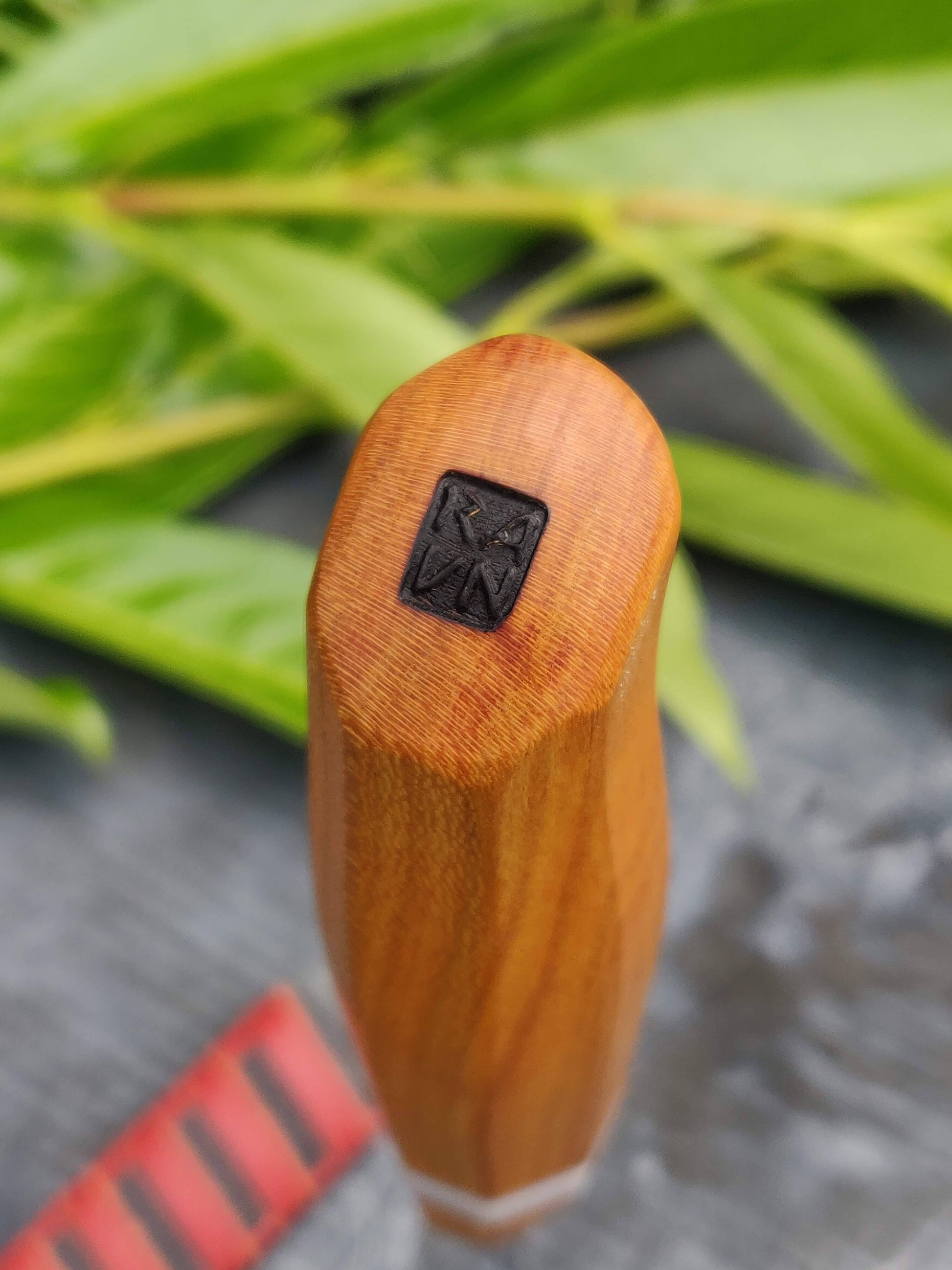 In the end, the knife is hand-sharpened on the stone-like fixture, which allows me to go from low grid to high grind and then polishing compounds on leather. The result is a very flat and polished surface.