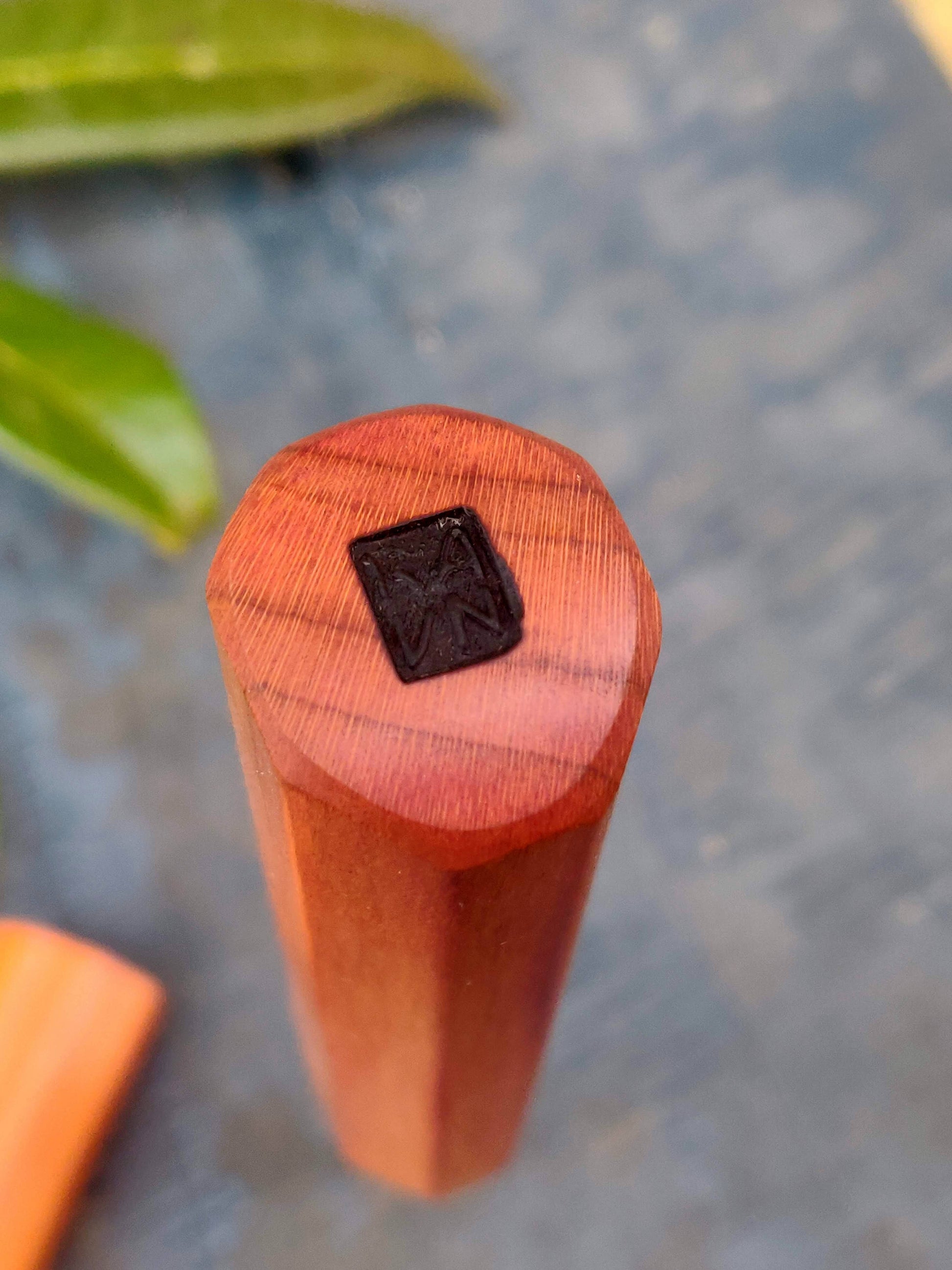 -The blade is hand-sharpened on a stone-like fixture, transitioning seamlessly from a low grid to a high grind and polished with compounds on leather, resulting in a flat and polished surface. One side is decorated with nature-inspired plant engraving