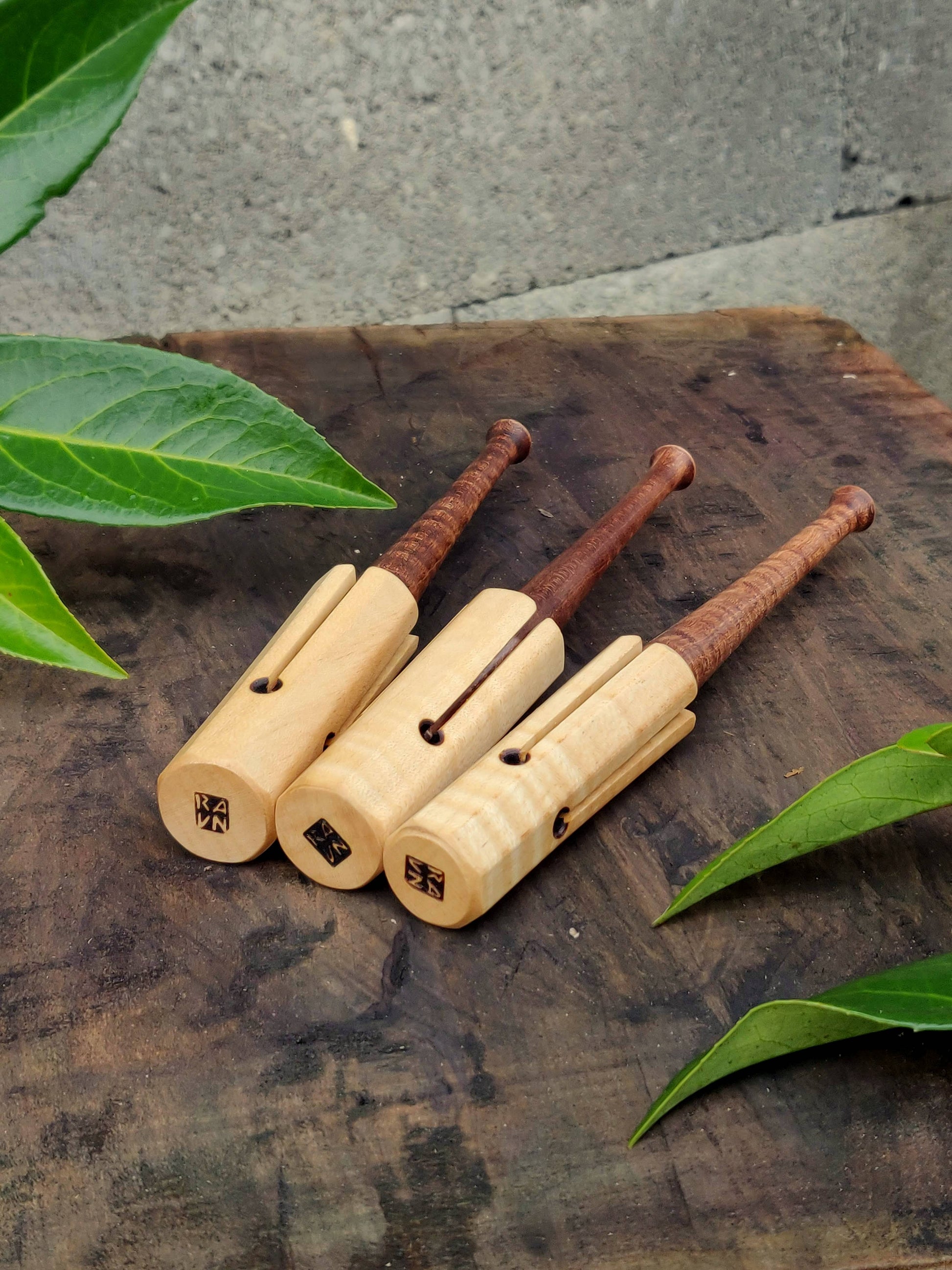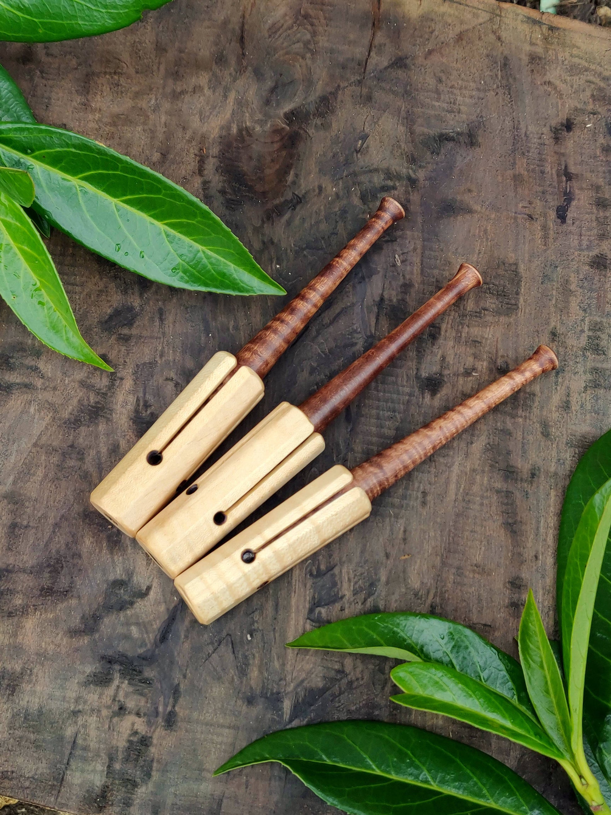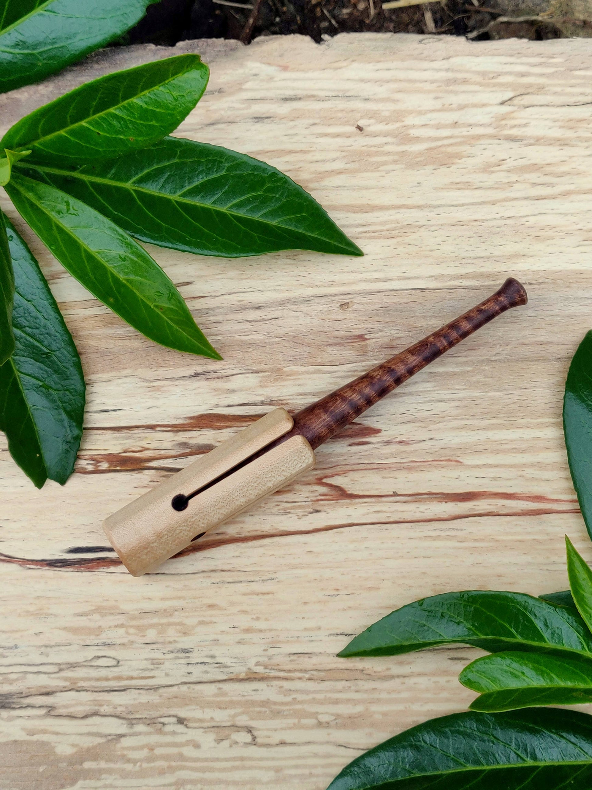 Small kolrosing knife from hand-forged high carbon steel blade and curly maple handle and walnut sheath.
