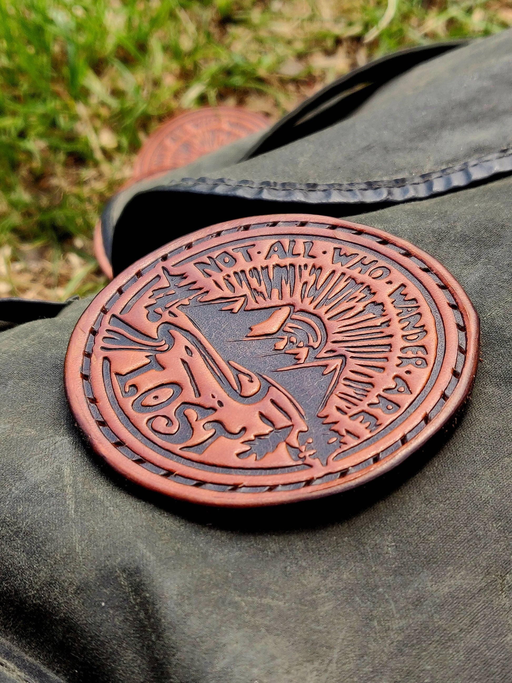 Leather patch "Not all who wander are lost", deep pressed patch, Leather coaster, mountain patch