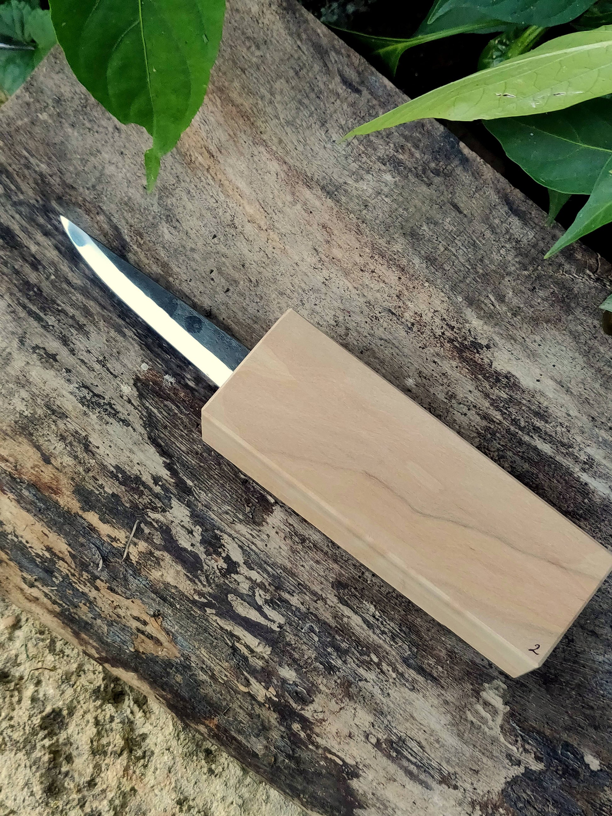 Set of blade and woodblock with tang hole predrilled.