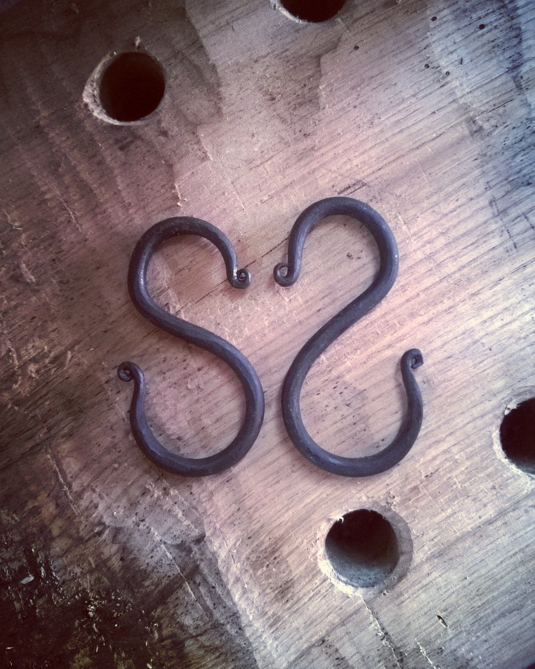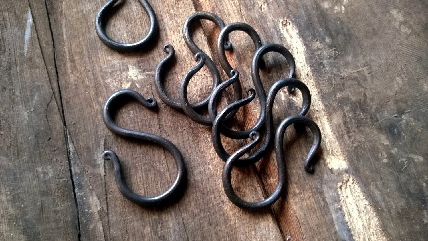 Forged iron s-hook with curled ends, very useful in reenactment camps, Renaissance fairs and for hanging stuff...