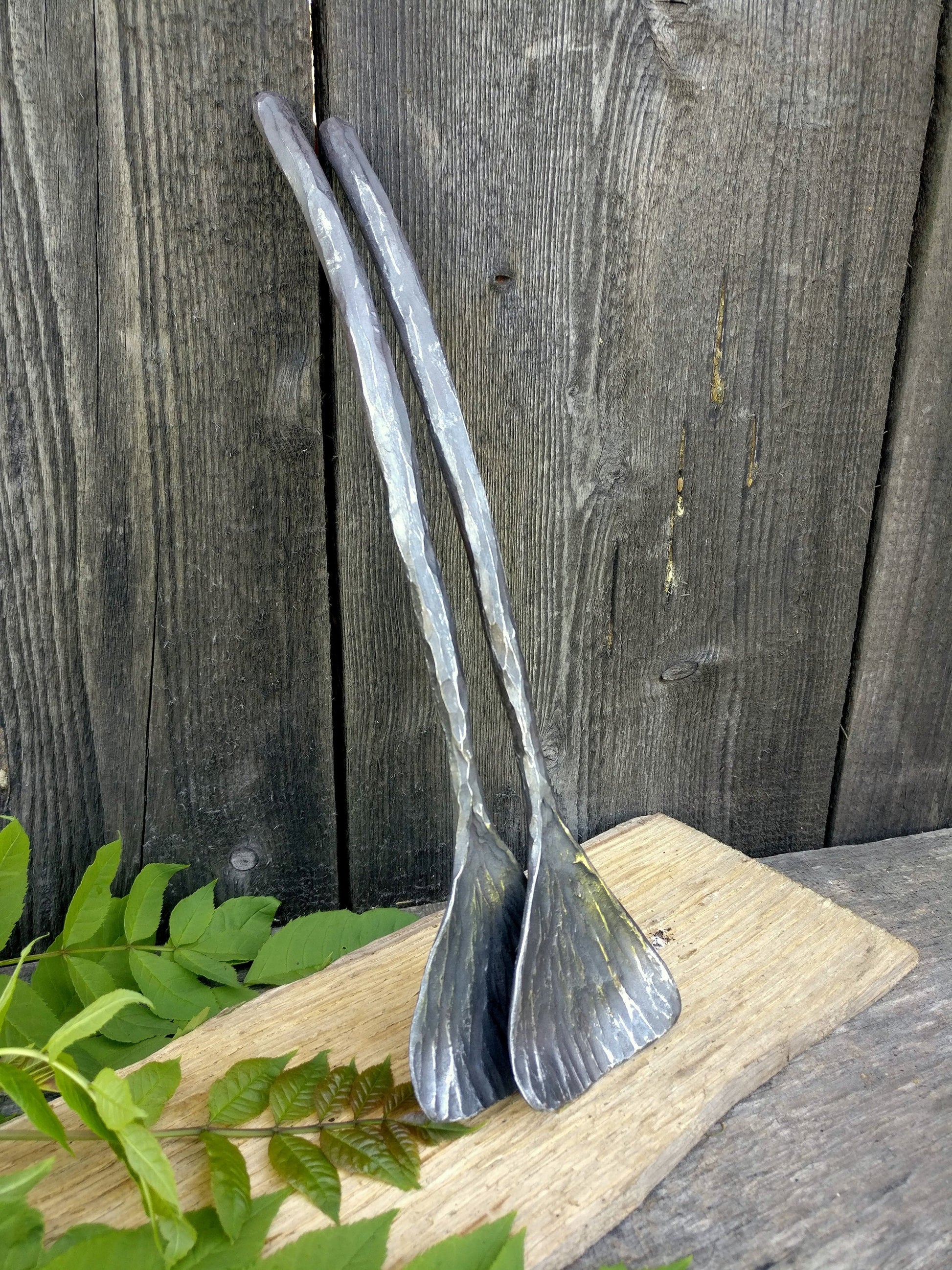 Salad servers, Hanforged stainless steel, Forged servers, Modern salad servers