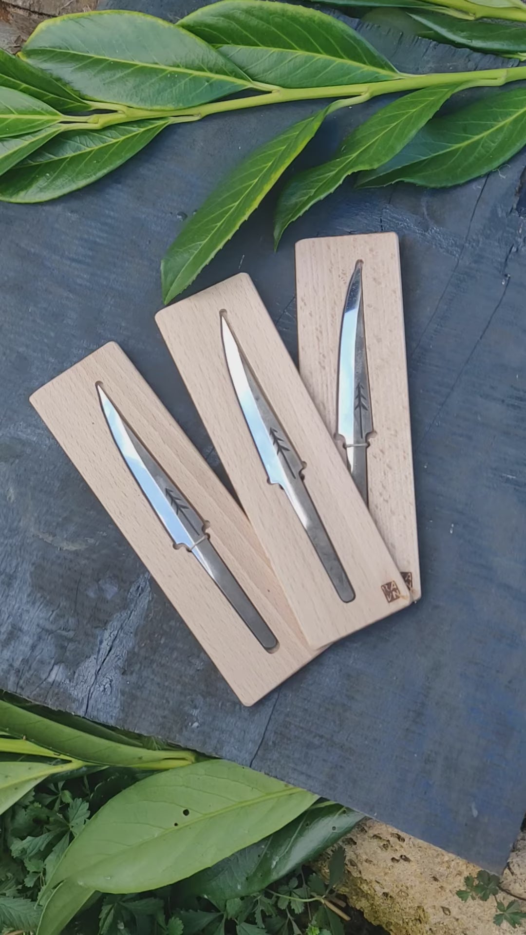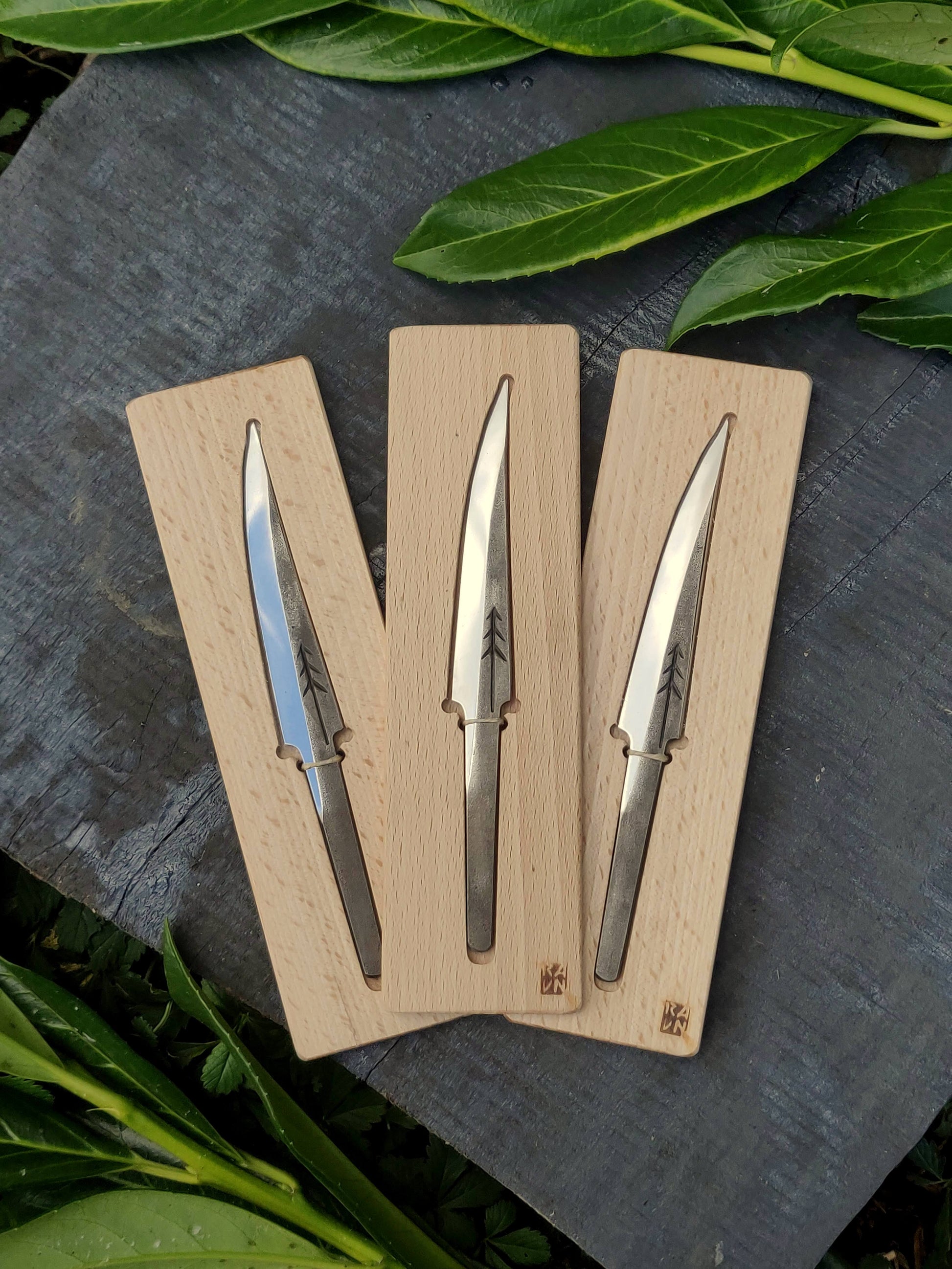Due to the upgraded process and heat-treating equipment, I started using stainless steel. Started with Aebl and similar steels in my kitchen knives series and after good use in my kitchen I quickly grew fond of them. CATRA edge retention tests performed by Dr. Larrin Thomas show that AEB-L outperforms 52100/100Cr6 in the edge retention test. Because the steel is stainless it keeps the edge corrosion to a minimum which really shows while working greenwood. The ease of sharpening is almost the same as my most popular 100Cr6. For more technical info check the last 2 photos.