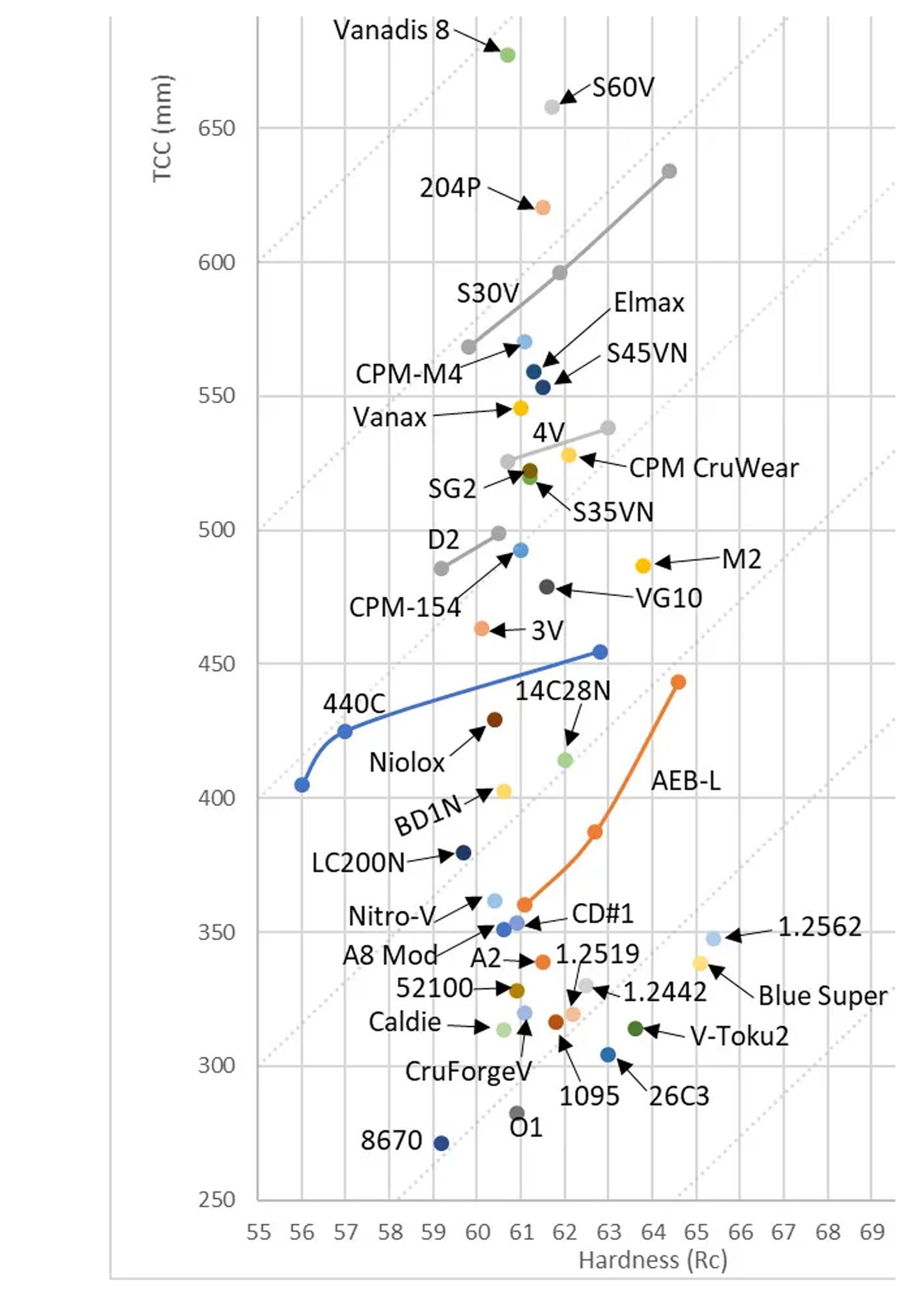 Blade steel: AEB-L stainless steel Hardness: ≈ 61 HRC