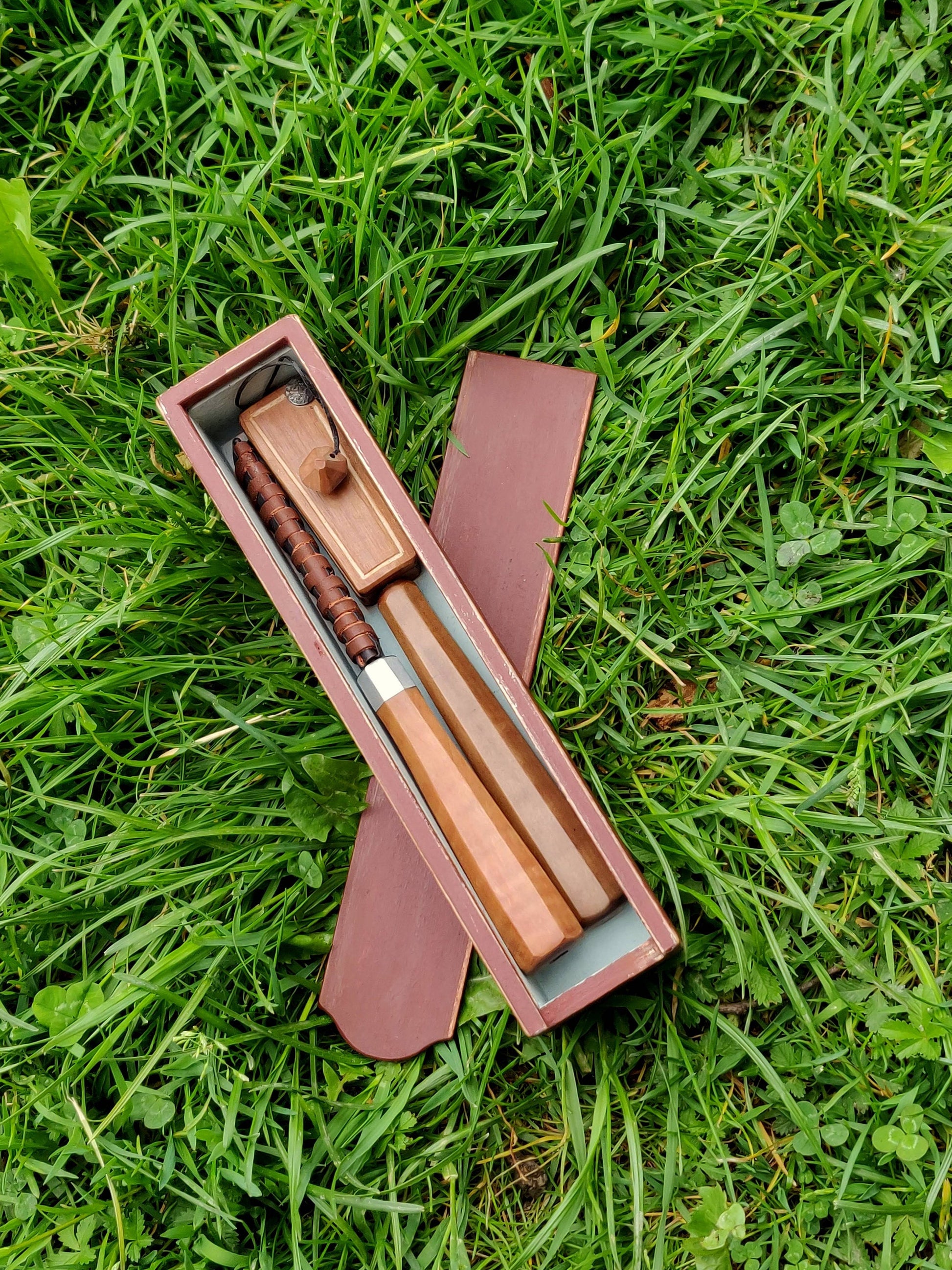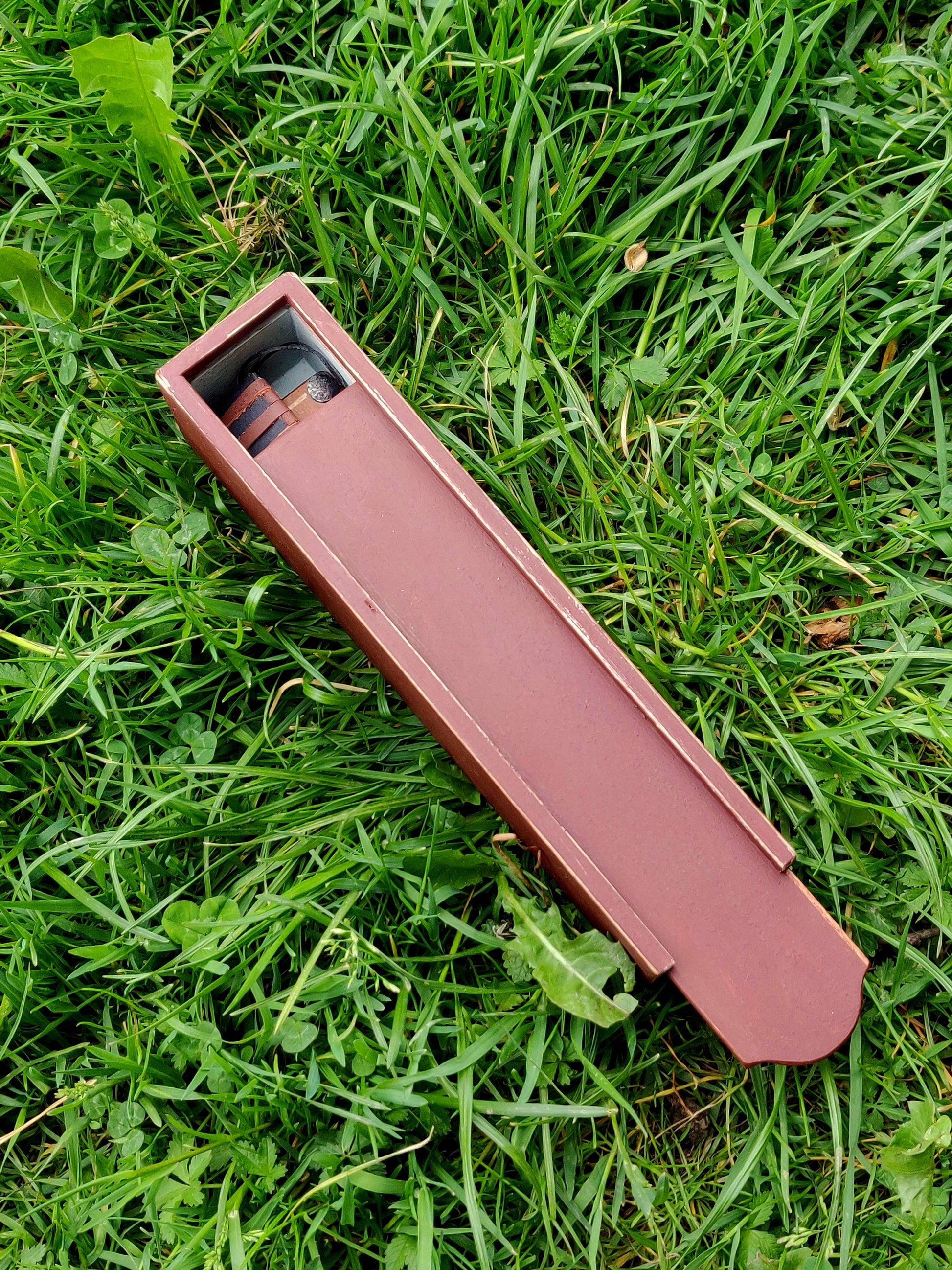 Small one chamber whittling box made out of layered wood, painted with milk paint.