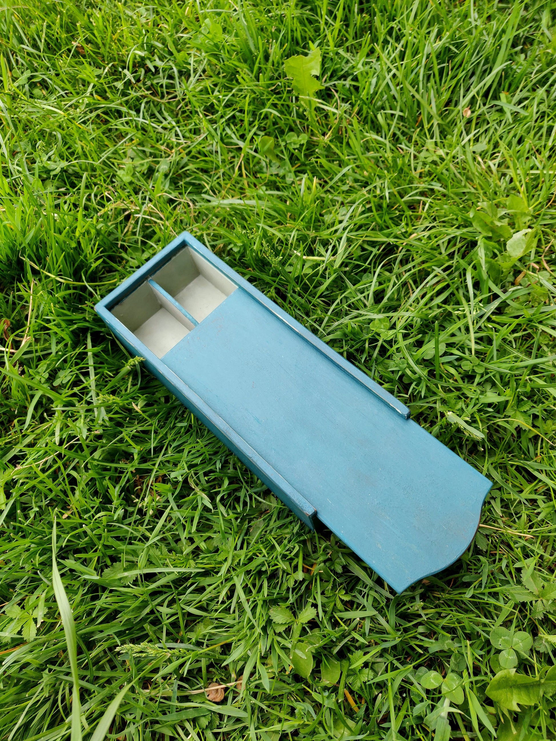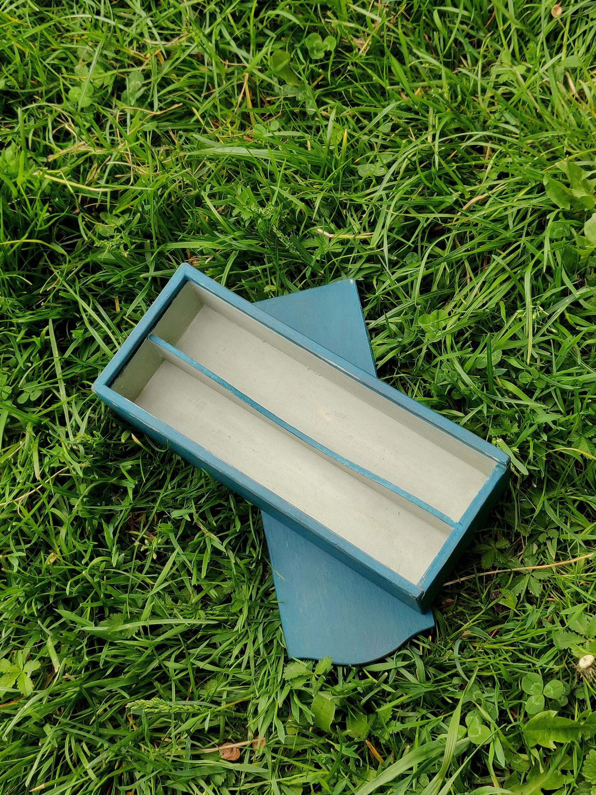 Whittling box. 2 chamber box. Milkpainted box. Slojd box